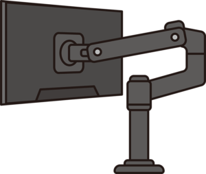 モニターアームを設置して、作業スペースが広くなった。とくに、モニターの下のスペース! ここに外付けHDDなどの周辺機器がおける! もっと早く知って設置すればよかった。